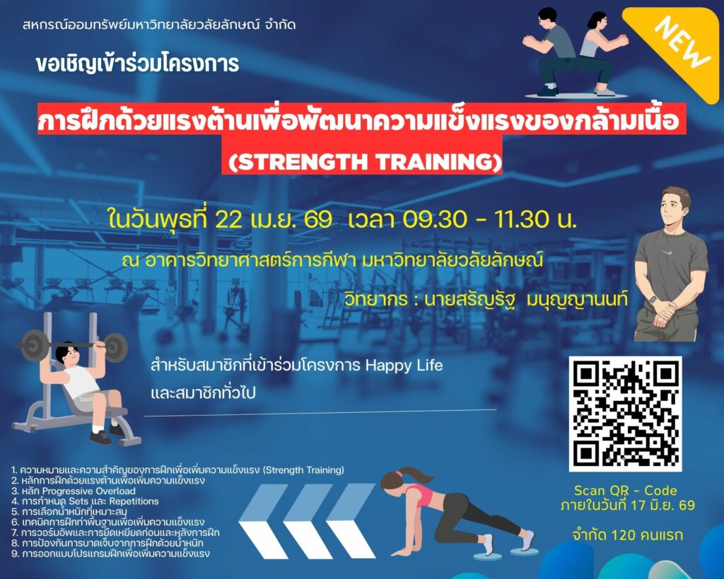 โครงการ “การฝึกด้วยแรงต้านเพื่อพัฒนาความแข็งแรงของกล้ามเนื้อ” / ไม่มีหมวดหมู่ / By thanyaporn Post Views: 4