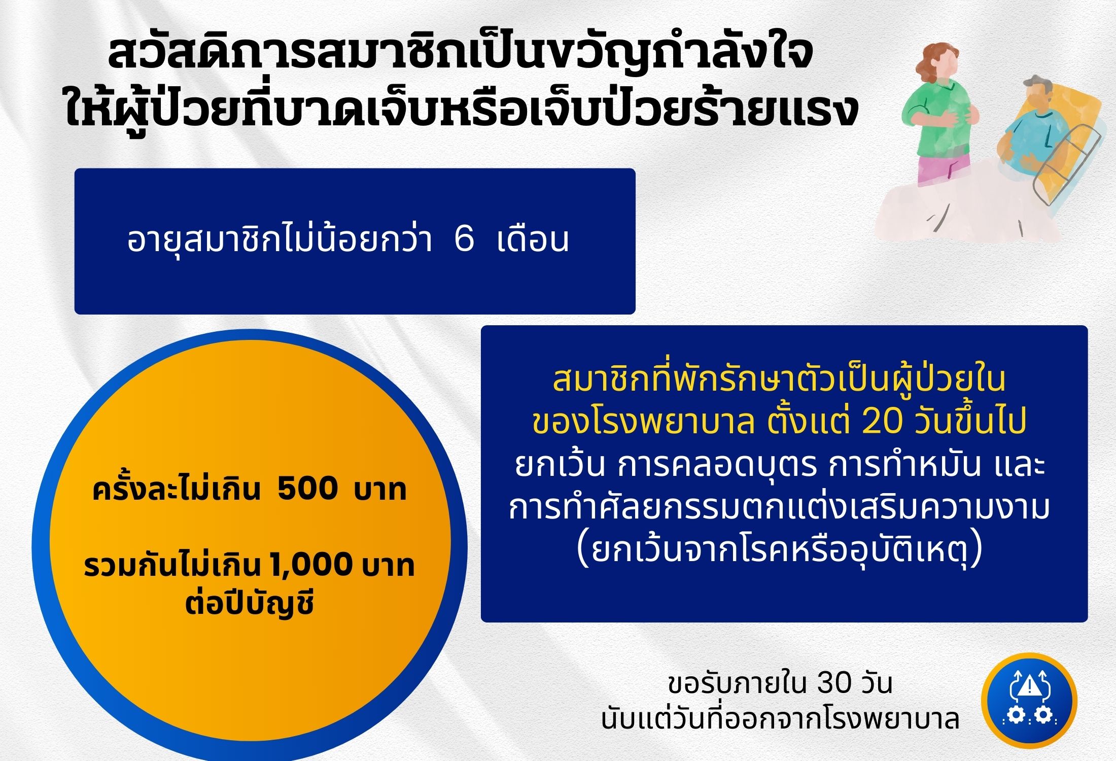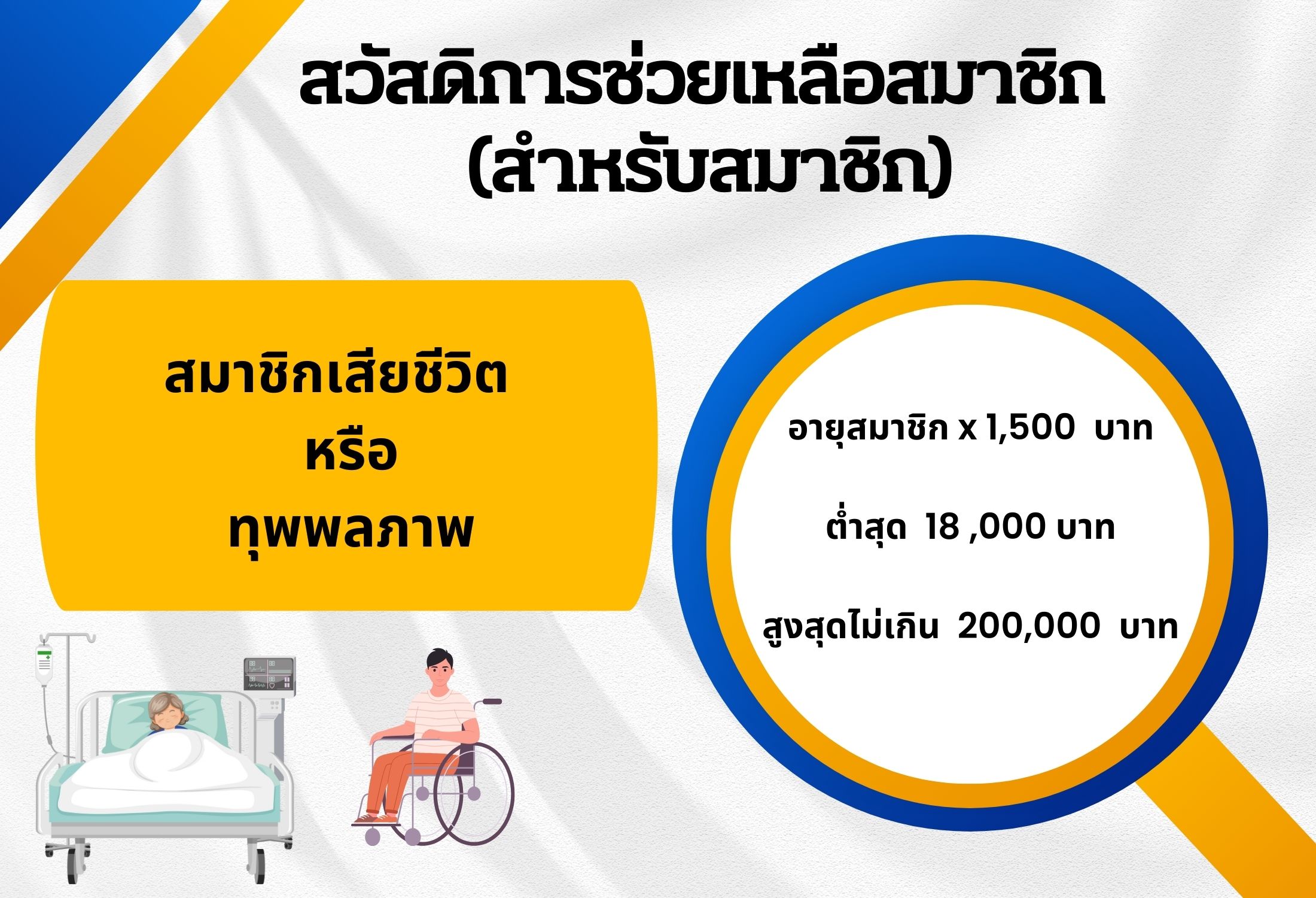 7. สวัสดิการสมาชิกเป็นขวัญกำลังใจให้ผู้ป่วยที่บาดเจ็บหรือเจ็บป่วยร้ายแรง